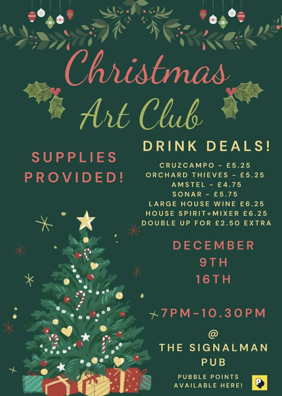 We have some lovely local artists selling their crafts this Sunday in the marquee for some unique Christmas gifts! 12-5pm & no entrance fee, so come for a peruse & support local! Plus we have the wonderful Ellie Pepper performing in the early evening to see out the rest of the weekend!